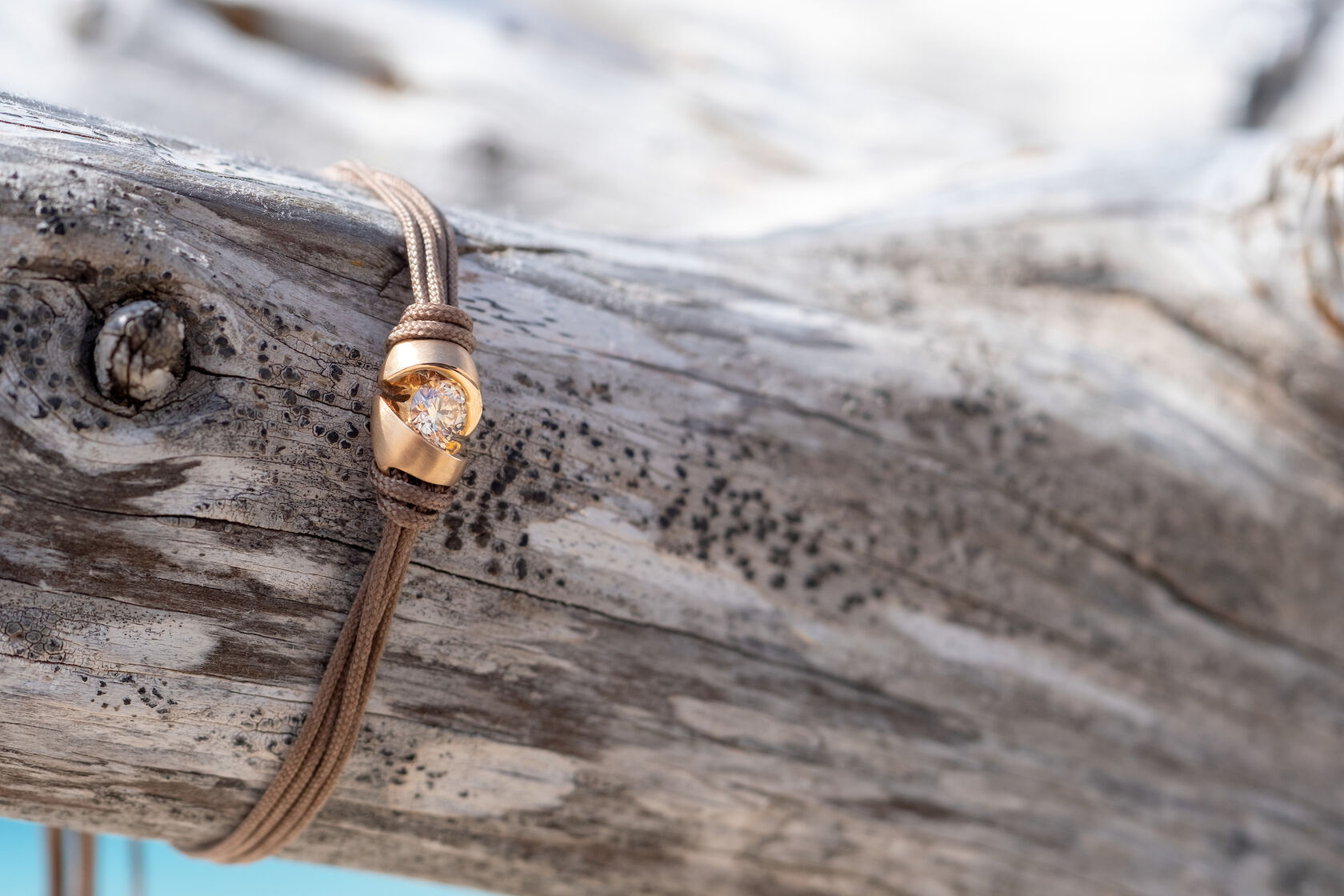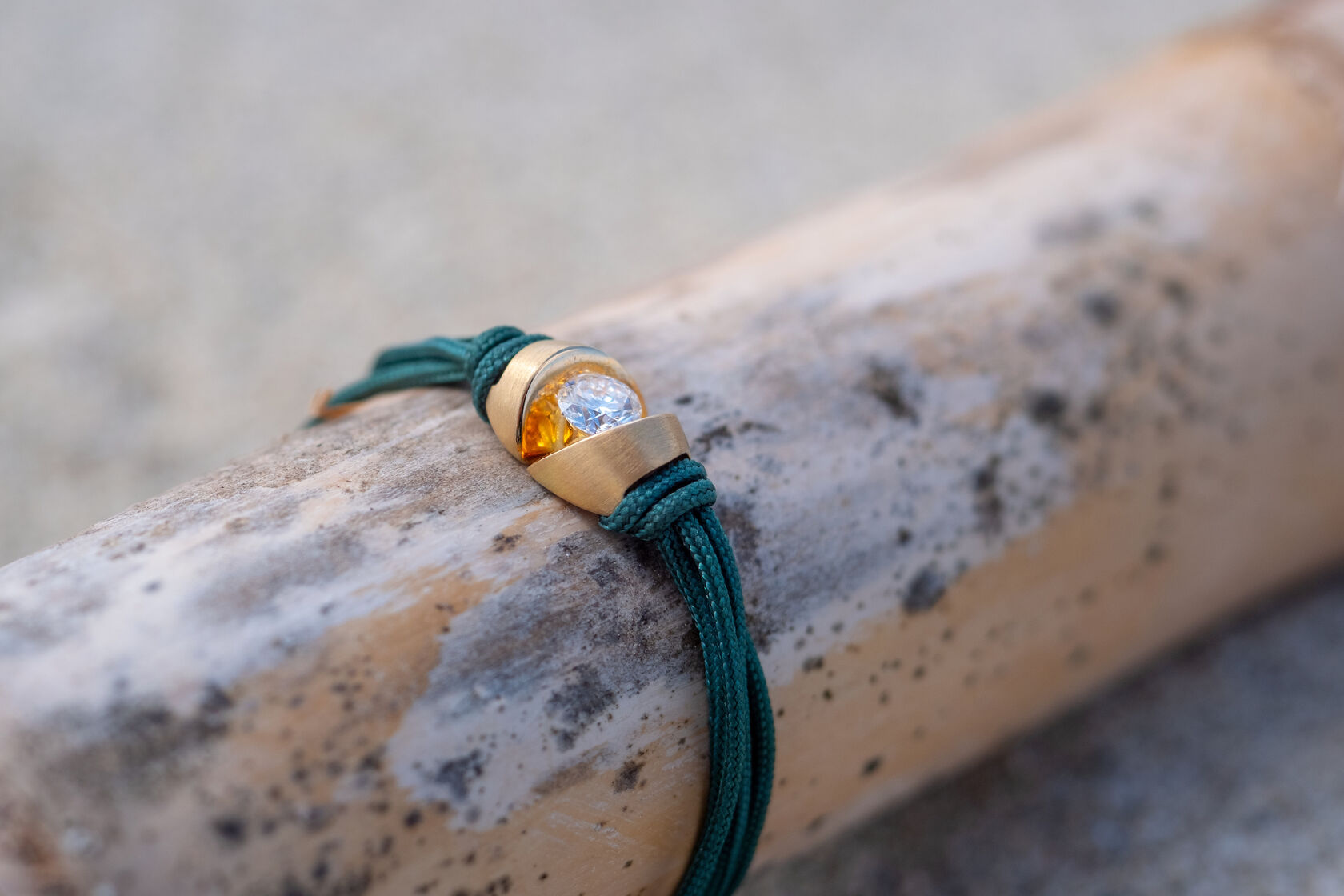 Dass echter Diamantschmuck richtig stylish sein kann, beweist die Serie „Colortaire“ mit ihren farbenfrohen Textilarmbändern, die sich farblich an den aktuellen Fashion- und Home-Interieur-Trends orientieren. Eingebettet in einem goldenen Rahmen scheint der funkelnde Edelstein in der Mitte des Schmuckelements zu schweben. Und das Beste: Auch Männer können ihre Handgelenke mit den angesagten „Colortaire“ Modellen schmücken!