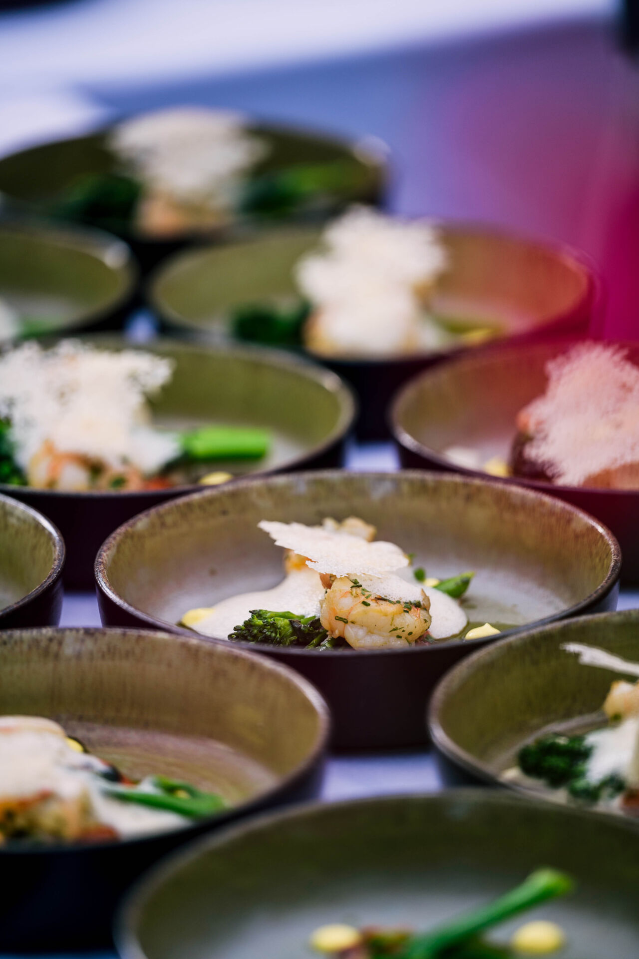 Die Gäste wurden mit köstlichen Lavendel Spritz begrüßt, die eine perfekte Balance zwischen Erfrischung und einem Hauch von Lavendel boten. Begleitet wurde der Abend von einer exquisiten Auswahl Köstlichkeiten vom Holzkohlegrill, die live vor den Gästen zubereitet wurden.