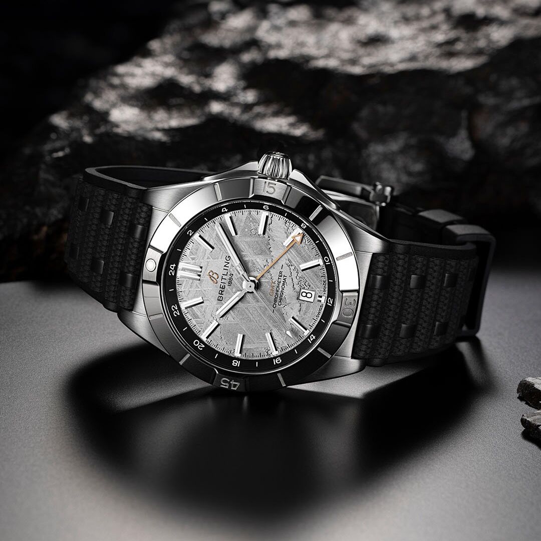 Das Highlight: ein Zifferblatt aus seltenem Muonionalusta-Material – mit individueller Maserung, die jede Uhr einzigartig macht. Die kontrastreichen schwarzen Totalisatoren verleihen dem Design Tiefe und Ausdrucksstärke. Auf dem Gegengewicht des Chronographen-Zentralzeigers finden sich die Initialen von Erling Haaland – dezent, aber aussagekräftig. Eine subtile Signatur für alle, die Wert auf Details legen.