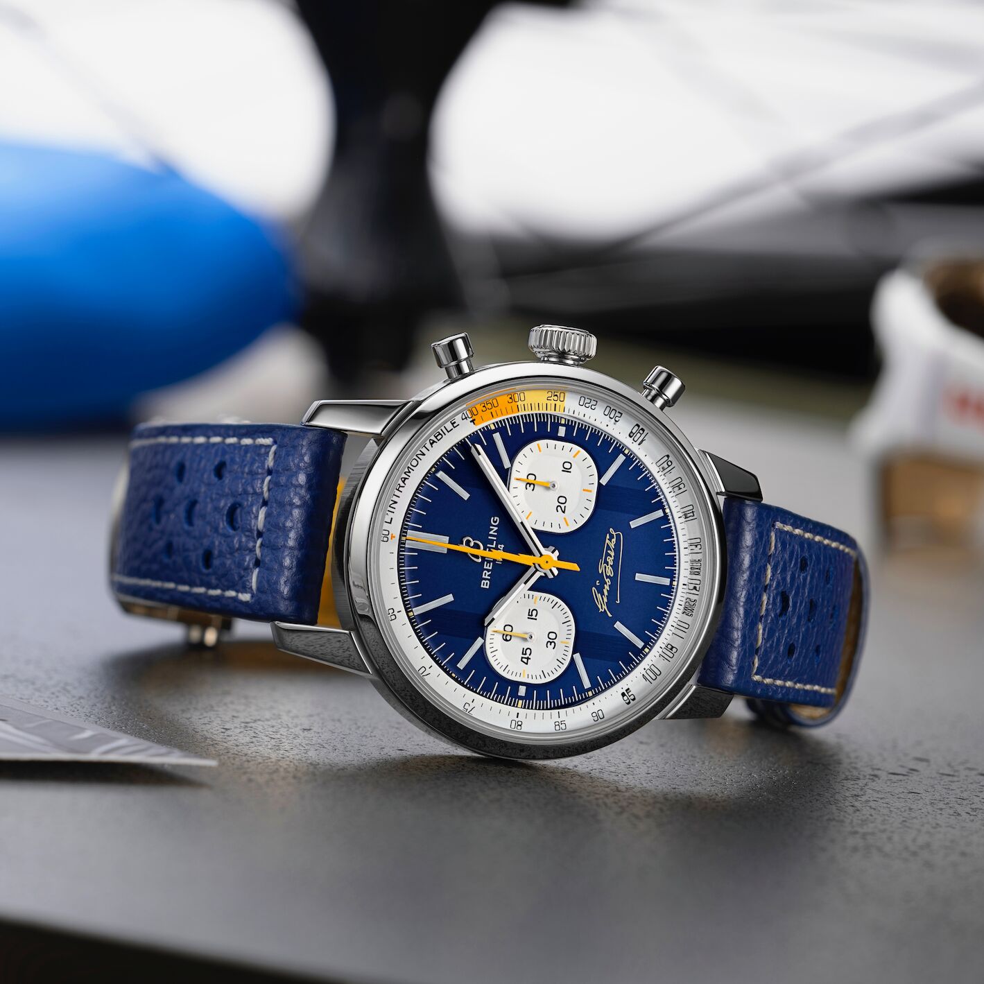 Die Top Time Racing ist zurück – kraftvoll, grafisch und bereit für die nächste Etappe. Breitling zelebriert mit drei limitierten Modellen die Hochgeschwindigkeit der Vergangenheit und verbindet sie mit modernem Uhrendesign. Charakteristisch sind die kissenförmigen Gehäuse, die mutigen Zifferblätter im „Surfboard“-Look und eine Tachymeterskala, die sofort Assoziationen mit der Rennstrecke weckt.