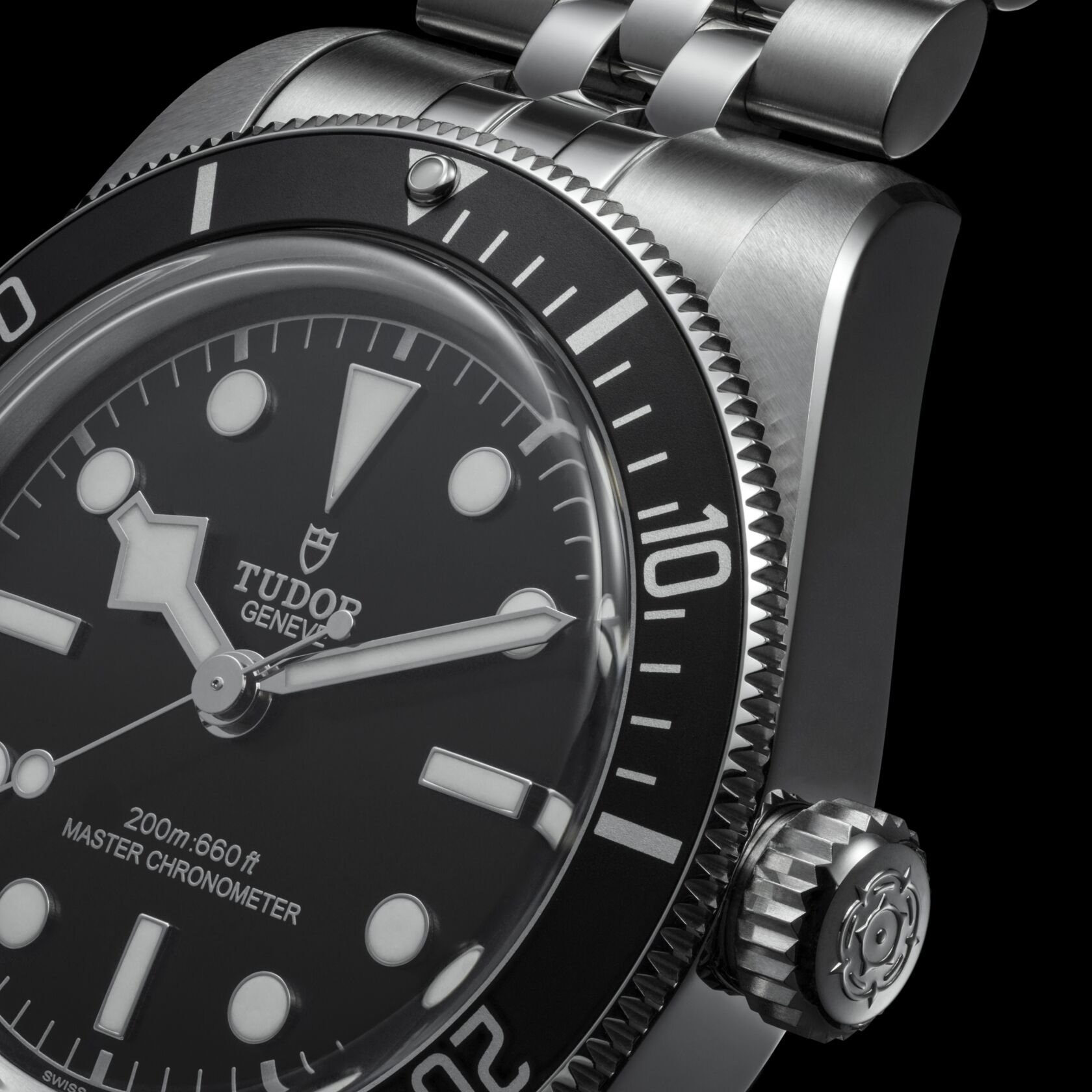 TUDORs neue Black Bay behält die charakteristischen Proportionen der Original Black Bay bei, mit einem 41 mm Edelstahlgehäuse und einer einseitig drehbaren schwarzen Lünette mit 60-Minuten-Graduierung und silberfarbenen Akzenten. Das Zifferblatt der Uhr ist schwarz, leicht gewölbt und hat eine satinierte Oberfläche mit Sonnenschliff sowie silberfarbene Akzente. Wie bei der Black Bay 58 GMT ist auch die neue Black Bay mit dem markanten "Snowflake"-Zeiger ausgestattet, der seit 1969 ein Merkmal der TUDOR Taucheruhren ist. Die Uhr wird vom Manufakturwerk Kaliber MT5602-U angetrieben und ist COSC zertifiziert. Sie verfügt über eine Siliziumspiralfeder und eine Gangreserve von ca. 70 Stunden. Die neue Black Bay von TUDOR ist entweder mit einem dreireihigen Armband aus vollständig satiniertem Edelstahl oder einem fünfreihigen Armband aus gebürstetem und poliertem Edelstahl mit ovalen Gliedern erhältlich. Beide Armbänder sind mit einer TUDOR "T-fit"-Schließe mit Schnellverstellsystem ausgestattet. Für Liebhaber sportlicherer Uhren gibt es die Black Bay auch mit einem anpassbaren schwarzen Kautschukarmband, das ebenfalls mit einer TUDOR "T-fit"-Schließe ausgestattet ist. Das Kautschukarmband ist in drei verschiedenen Größen erhältlich.