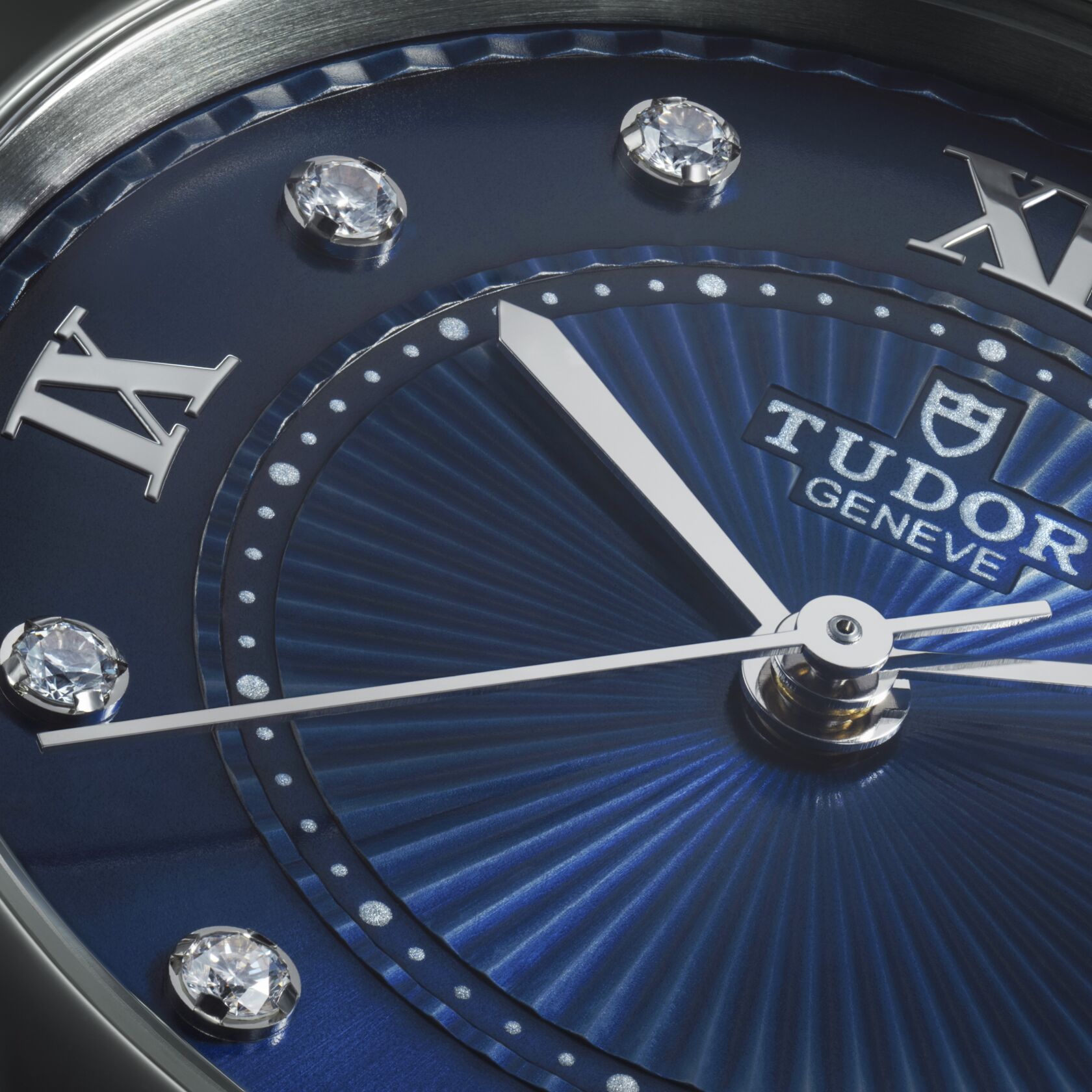 Die Clair de Rose präsentiert ein poliertes Edelstahlgehäuse mit einer raffinierten und eleganten Gestaltung, die an das reiche Erbe von TUDOR anknüpft. Das Zifferblatt der neuen Variante ist in Opalfarben oder in „TUDOR Blau“ gehalten, wahlweise mit oder ohne Diamanten. „TUDOR Blau“ symbolisiert die enge Beziehung zwischen TUDOR und dieser Farbe, ohne einen spezifischen Farbton anzugeben. Die Clair de Rose wird von den Kalibern T601 oder T201 mit automatischem Aufzug angetrieben und bietet eine Gangreserve von 38 Stunden. Diese Neuheit ist mit einem fünfreihigen Edelstahlarmband mit „Reisperlen“-Elementen erhältlich.