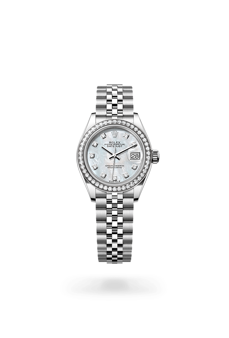 Rolex Lady-Datejust Oyster, 28 mm, Edelstahl Oystersteel und Weißgold mit Diamanten M279384RBR‑0011