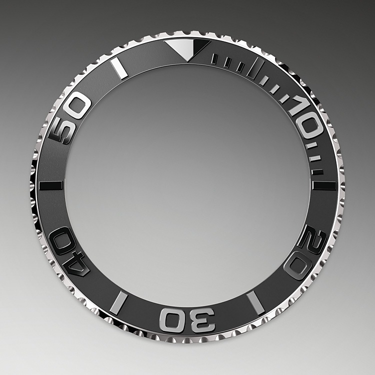 In beide Richtungen drehbare Lünette mit 60-Minuten-Graduierung, Cerachrom-Zahlenscheibe aus mattschwarzer Keramik, polierte Ziffern und Graduierungen im Relief -